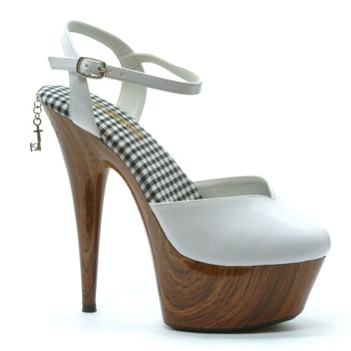 6 Inch Sexy High Heel Shoes Platform Sandals Closed Toe White Features- White / Faux Wood