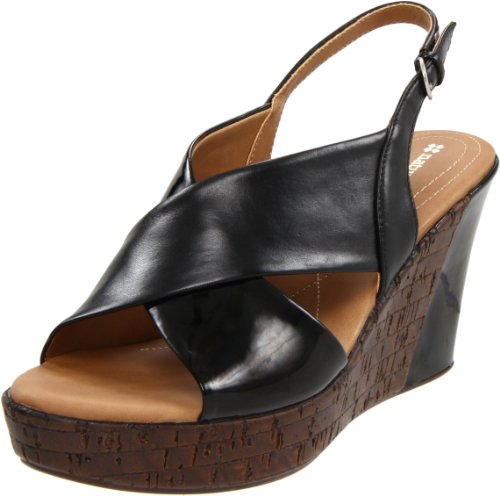 Five elements of comfort combine beautifully in Naturalizer Women's Payton Strappy Sandals Give your style a boost with this sophisticated platform wedge sandal that's packed with plenty of comfort, too! N5 technology combines a flexible insole, featherweight outsole, ergonomic heel and toe shape for stability, polyurethane foam cushioning and breathable linings. Wide leather and synthetic patent straps criss-cross over the foot in an open-toe design, and a heel sling strap with an adjustable buckle helps keep the sandal in place. Crafted with a cork and leather-covered wedge.